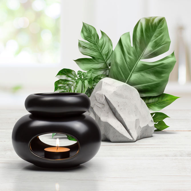 A gracefully shaped ceramic aroma lamp ideal for diffusing your facvorite Sun’s Eye oils.