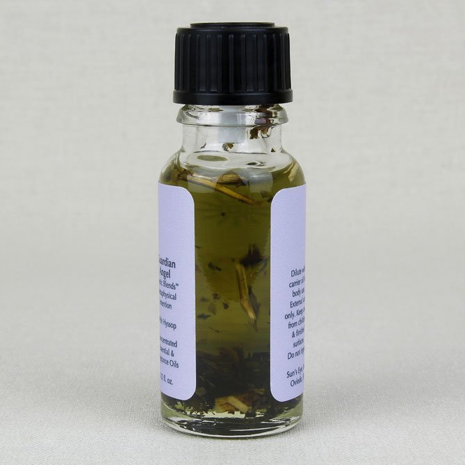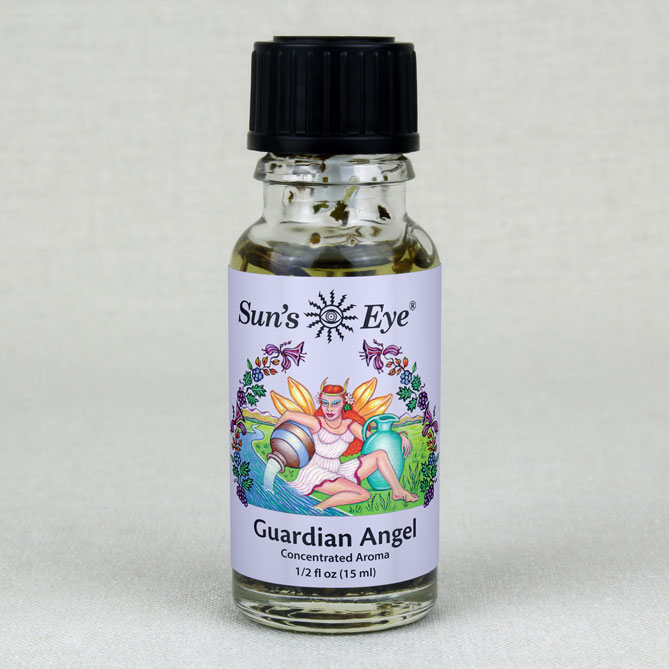 Guardian Angel Oil, featuring Hyssop Pieces with floral top notes and a base note of Sandalwood, is formulated to attract spiritual assistance and protection. Mystic Blends Oils are created by combining herbs and oils traditionally associated with each intention.