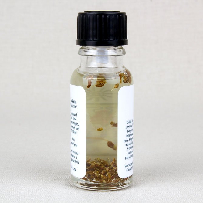 Hekate Oil, featuring Anise Seeds with sweet top notes and a base note of Peppermint, is formulated to encourage attributes of Hekate: goddess of triple aspect, magic, crossroads, and the dead. Traditionally associated herbs are included as the Deity Oils are blended to honor the energetic qualities of each of the Deities.