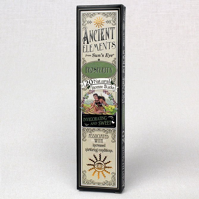 Ancient Elements Prosperity Incense is invigorating and sweet. Box of 20 Sticks