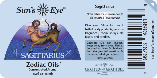Formulated to encourage attributes of Sagittarius: optimistic, tolerant, philosophical, and jovial.