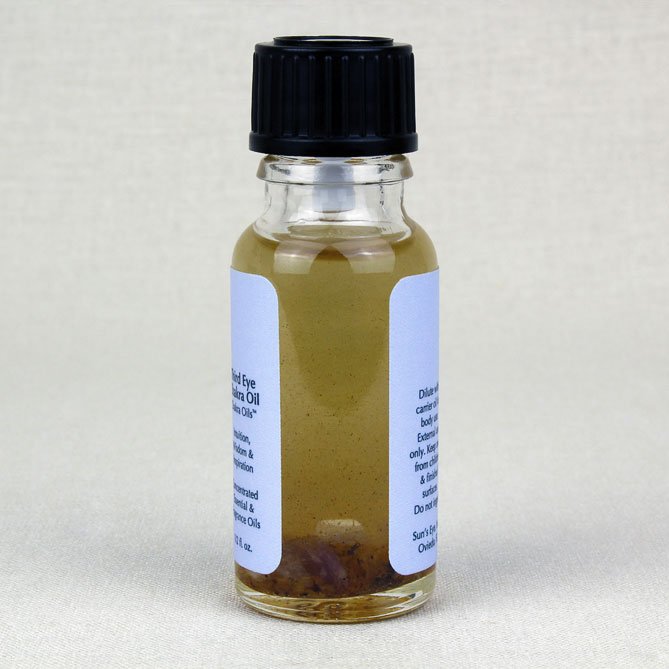 Third Eye Chakra Oil, featuring Palo Santo Wood and Amethyst Chips with a citrus top note and a base note of Sandalwood, is formulated to promote intuition and insight. Chakra Oils are blended to enhance the unique energetic vibration of each of the seven chakra centers. Dried herbs and gemstone chips infuse each Chakra Oil with additional vibrational qualities that support chakra balancing and alignment.