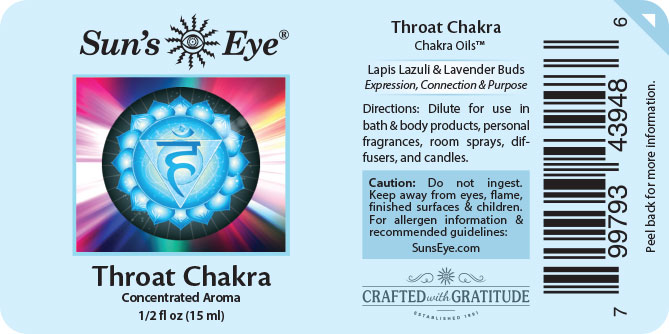 Throat Chakra Oil, featuring Lavender Buds and Lapis Lazuli Chips with earthy and exotic top notes and a base note of Rose Geranium, is formulated to promote expression and communication. Chakra Oils are blended to enhance the unique energetic vibration of each of the seven chakra centers. Dried herbs and gemstone chips infuse each Chakra Oil with additional vibrational qualities that support chakra balancing and alignment.