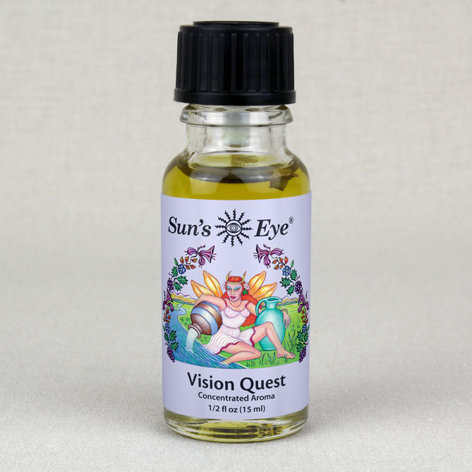 Vision Quest Oil, featuring Mugwort Pieces with exotic and earthy top notes and a base note of Honeysuckle, is formulated to stimulate creativity and the third eye. Mystic Blends Oils are created by combining herbs and oils traditionally associated with each intention.